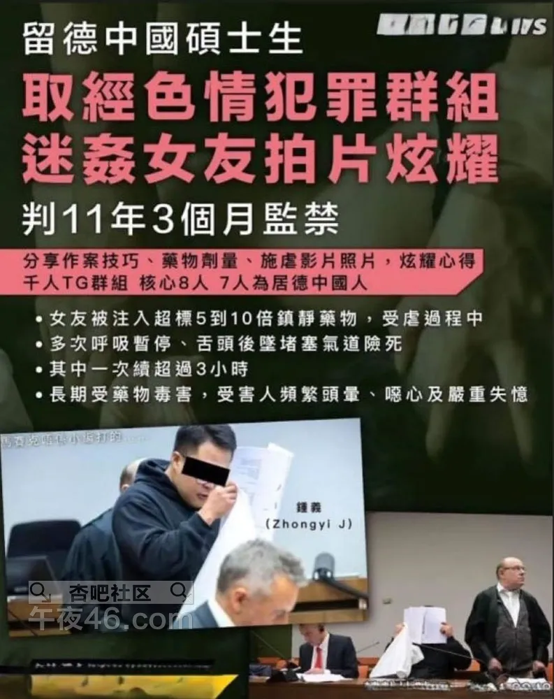 <p style="text-align: justify; font-size: 16px;"> </p><p style="text-align: justify; font-size: 16px;">德国慕尼黑法院2026年4月14日宣判一起骇人听闻的留学生迷*大案,2很赞哦在德博士生钟义(Zhongyi J.)被判有期徒刑11年3个月!此人竟对同楼中国女友多次下超量镇静剂(剂量超标5-10倍),致其深度昏迷、呼吸骤停至少两次,趁机实迷*奸7-8次,全程拍摄视频并狂拍850多张照片,还加入Telegram色情犯罪群分享作案手法与淫秽视频大肆炫耀,手段之残忍、行径之卑劣,简直令人发指、触目惊心!